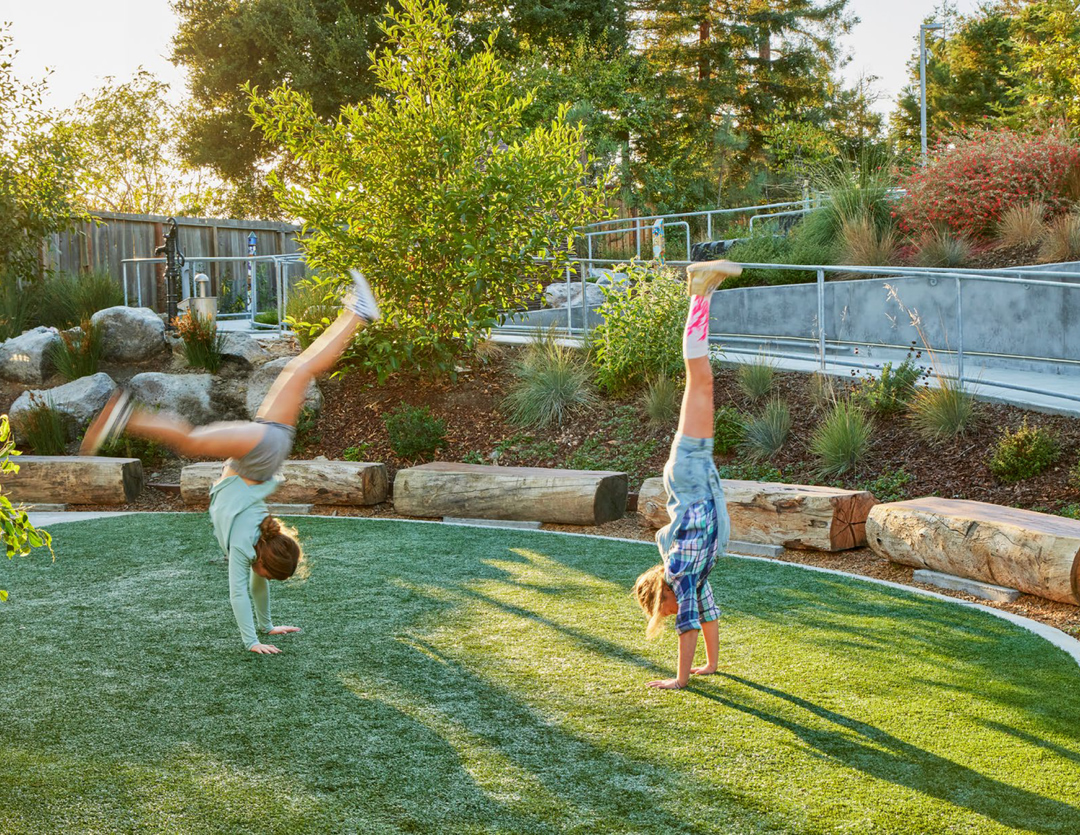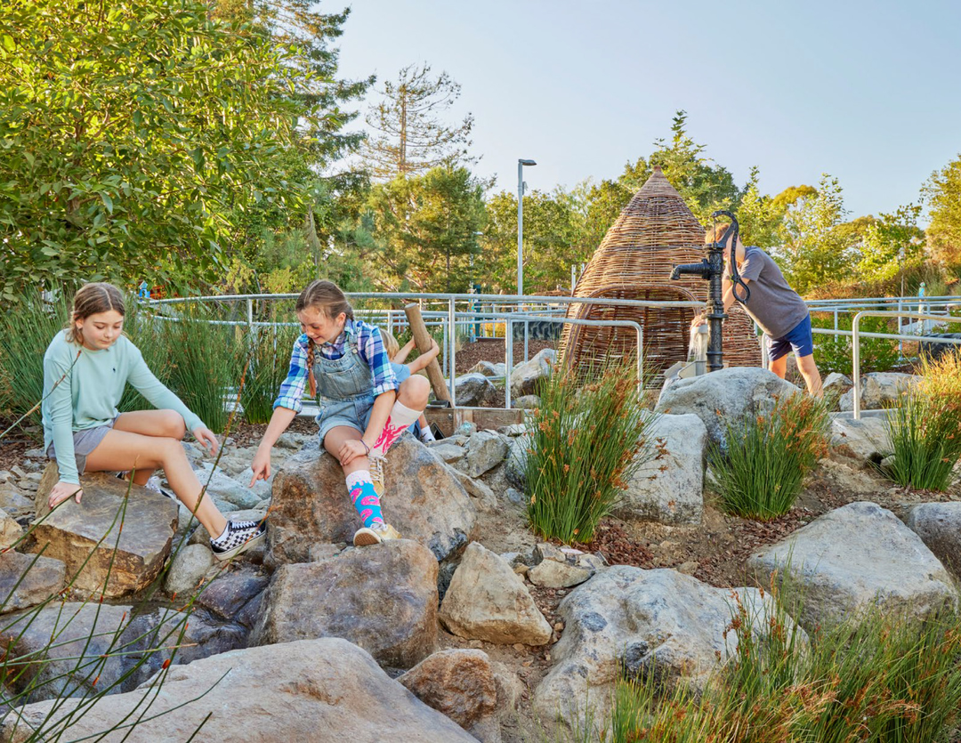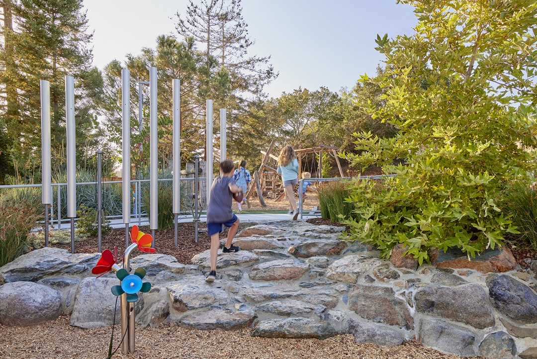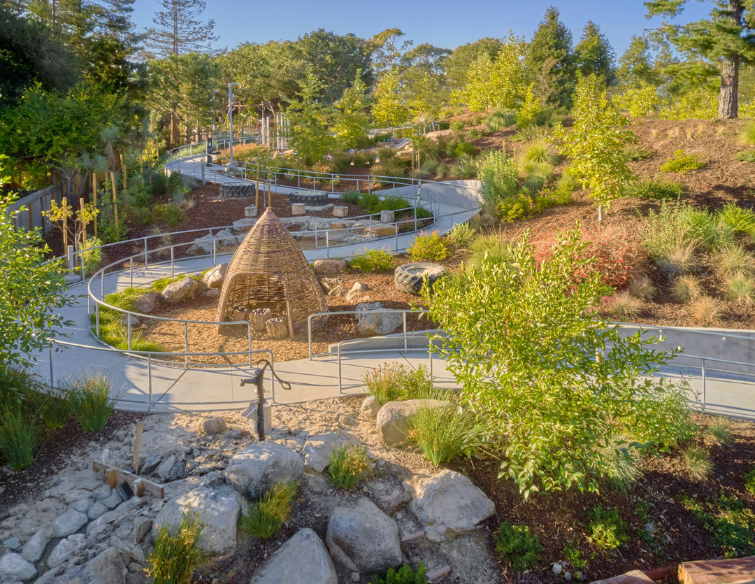 To achieve this goal on a steeply sloping site, an organically shaped central circulation path that followed the site contours become a critical design element that tied the project together, and enabled a variety of play experiences that were accessible to all.
