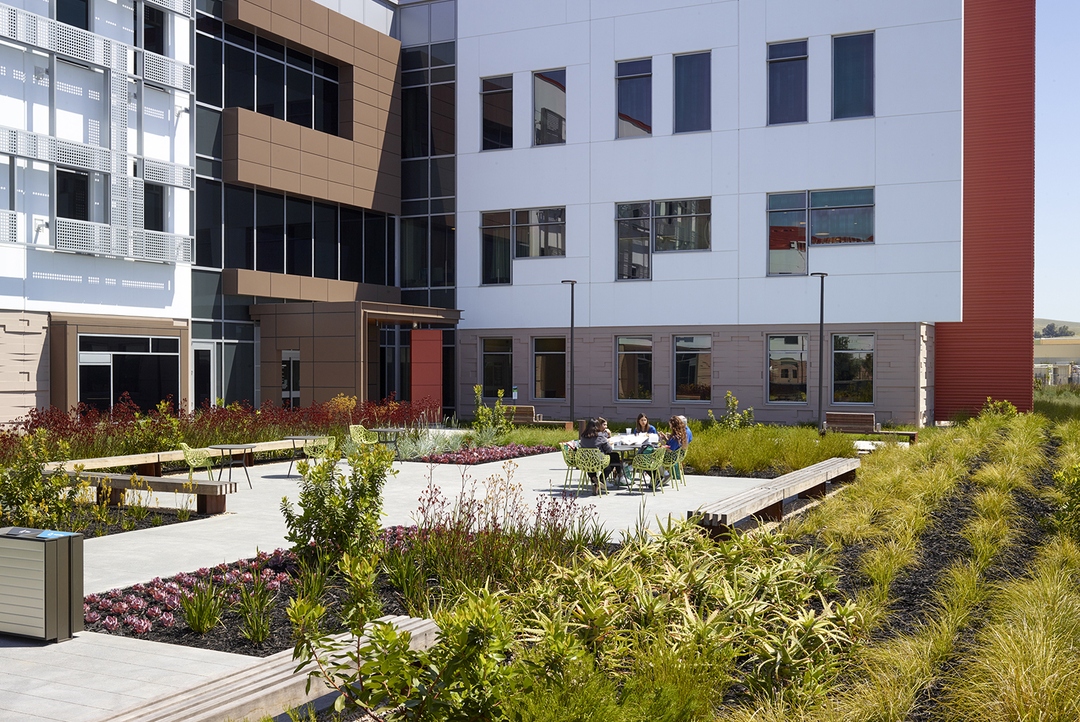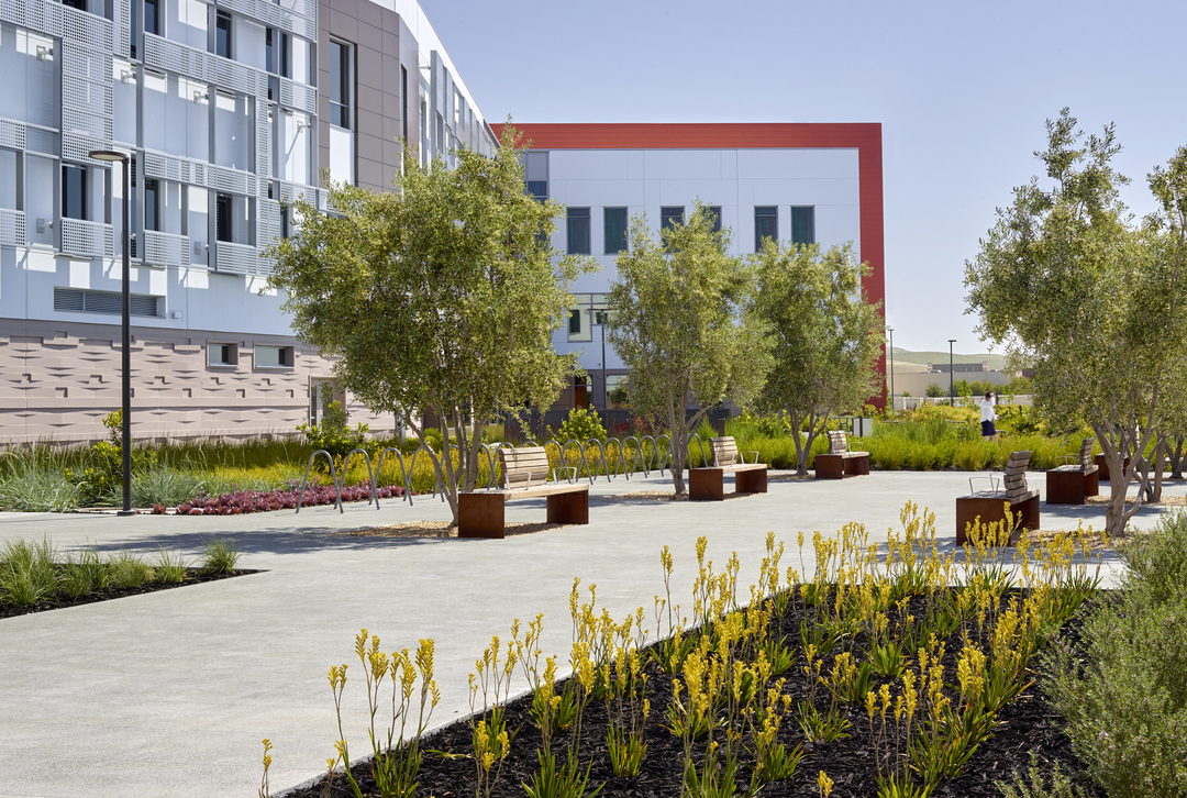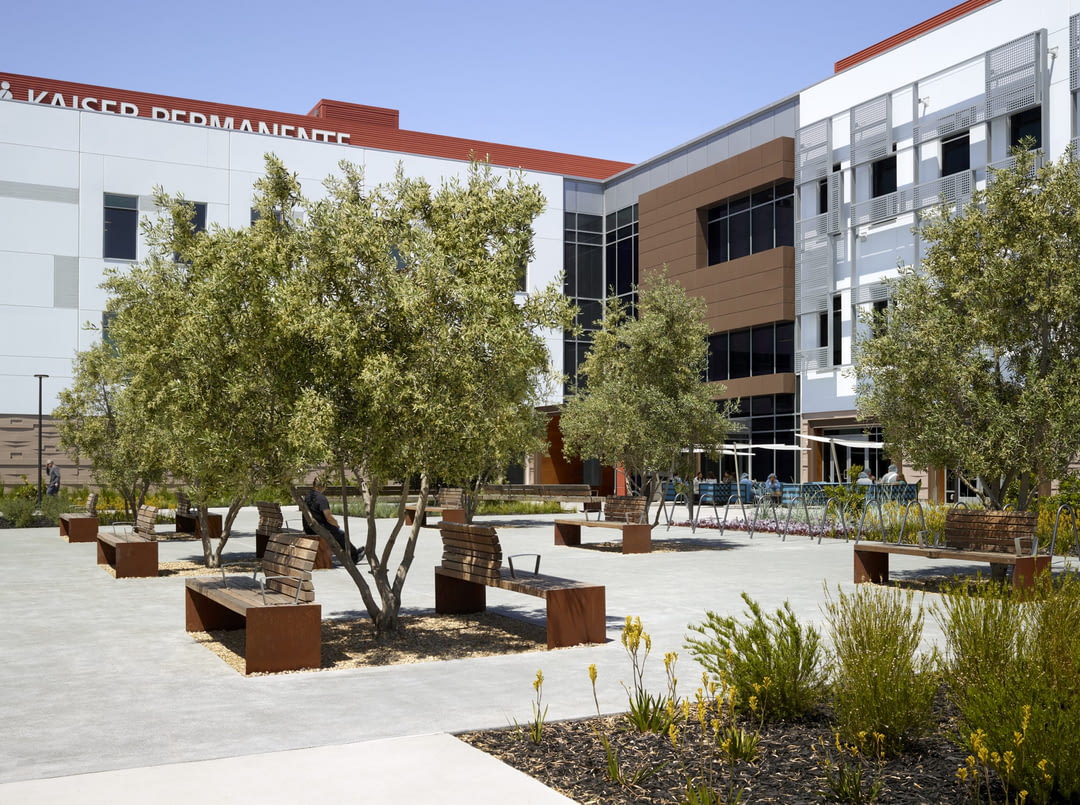 RHAA worked with Kaiser Permanente and SmithGroup JJR to develop a new medical campus in Dublin to serve the Tri Valley area. The new 40 acre site is being developed in 3 phases with the first phase consisting of a MOB medical building and a Cancer Specialty Center. Working closely with SmithGroup JJR and Sherwood Design Engineers, RHAA developed a concept that celebrates storm water conveyance as gardens. This not only connects the site to the historical geography, but it also provides a framework for a series of therapeutic and wellness garden rooms.